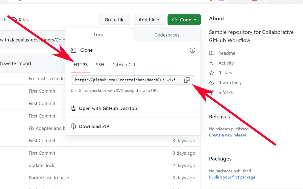 - On your fork's repository page, click on the "Code" dropdown button.