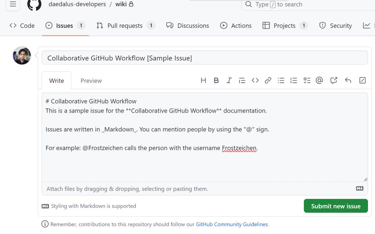 - Click on the "New Issue" button.
