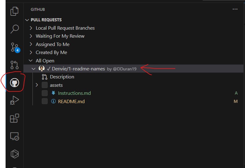 git push origin denvie/1-readme-namesNote: Use present tense, instead of past tense (Add vs Added).